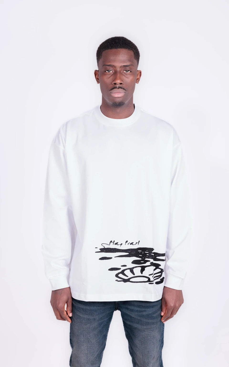 Ink Spill | Long Sleeve Graphic T-shirt (White & Black)