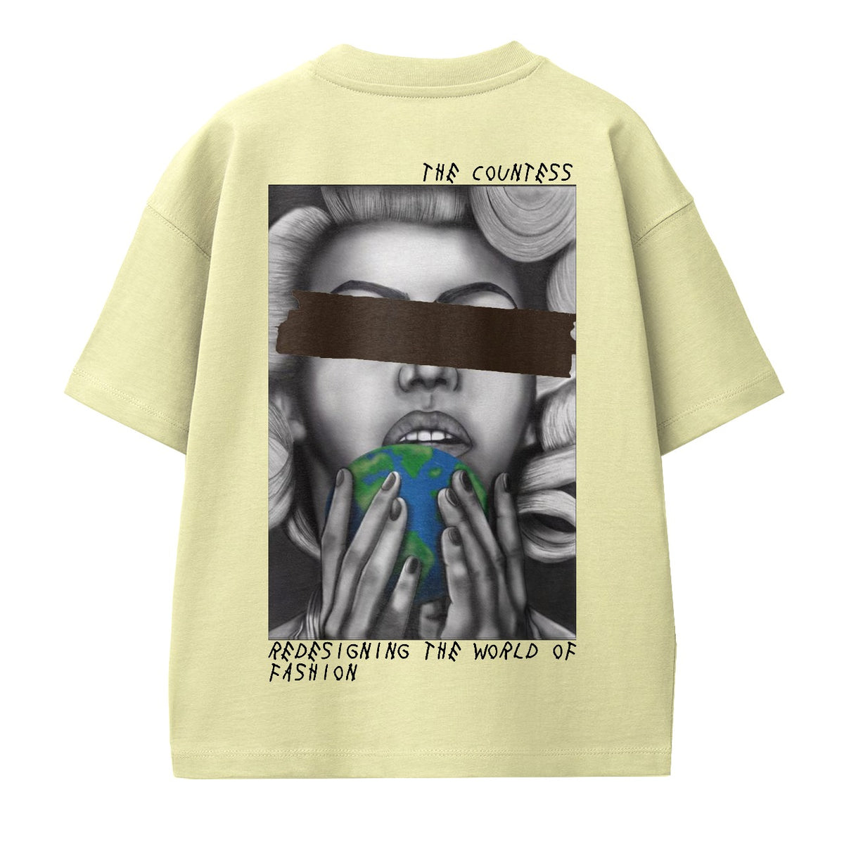On warm beige with a grounded brown eye covering and matching branding, this oversized tee channels earth tones into a statement of balance, resilience, and timeless style.